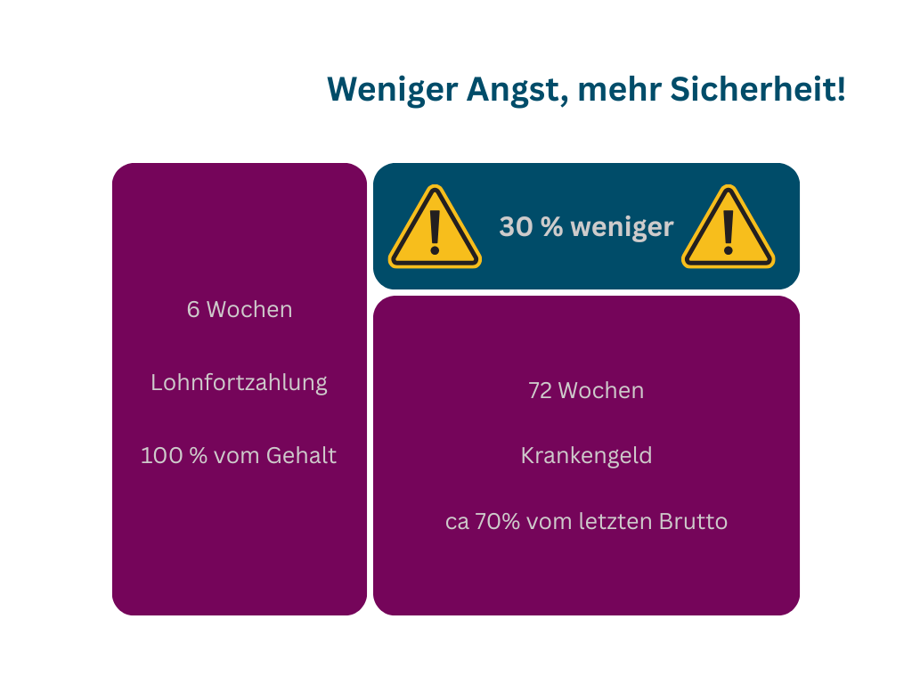 🔍 Beispiel: Nach einer schweren Krankheit bekommst Du auch nach 6 Monaten noch Dein volles Krankentagegeld.